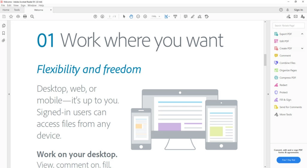 すべてのPDF バージョンに完全に統合されたAdobe Acrobat Reader は、 PDF ファイルの表示、注釈付け、印刷のための迅速な機能を提供します。どの分野に属していても、 作成したPDF ファイルをBox、DropBox、OneDriveなどのクラウド ストレージに保存できます。